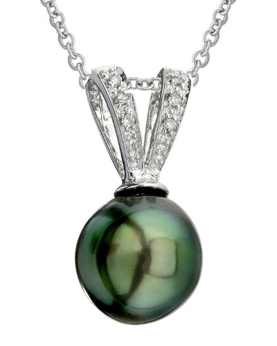 Best Seller! 11mm Tahitian South Sea Cultured Pearl & Diamond V-Shape Pendant in 14K Gold Review