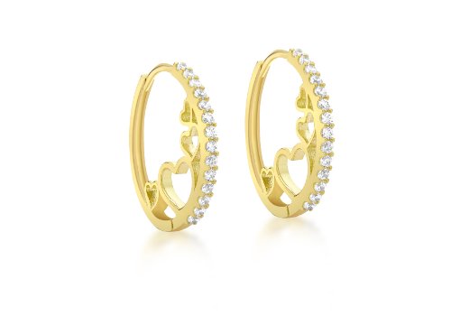 These beautiful 9 carat yellow gold and cubic zirconia cut out heart hoop earrings would look great with either a daytime or an evening look. They are the perfect present for your loved one, or just to add to your own collection of fine jewellery. This lovely pair of earrings will come complete with an elegant black leather gift box.
