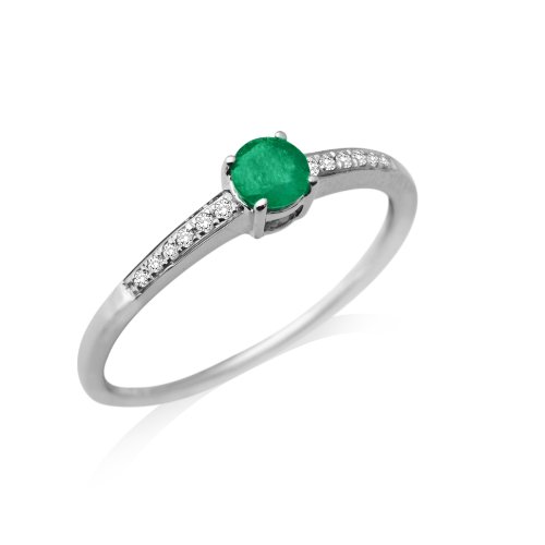 Best Seller! Miore 9ct White Gold Emerald and Diamond Shoulder Set Engagement Ring MCJ905R- Size N Review