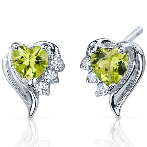 Best Seller! Revoni- Cupids Grace 1.00 Carats Peridot Heart Shape CZ Earrings in Sterling Silver Review