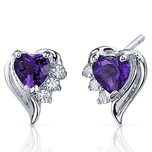 Center Stone: 2 Pieces Genuine Amethyst, Heart Shape 5 mm, 1.00 carats total weight, Royal Purple Hue with Brilliant Sparkle. Side Stones: 6 Pieces Super Sparkling Machine Cut White Cubic Zirconia. Earrings: 2.20 grams, Pure Sterling Silver with .925 stamp, Earrings feature Stud posts with Bullet backs, exceptional Design, Craftsmanship and Rhodium finishing. Perfect gift for Mothers Day, Birthdays, Valentines Day, Graduation, Christmas or just about any other occasion. Money Back Guarantee. Includes a Signature Gift Box , style PER-SE7366
