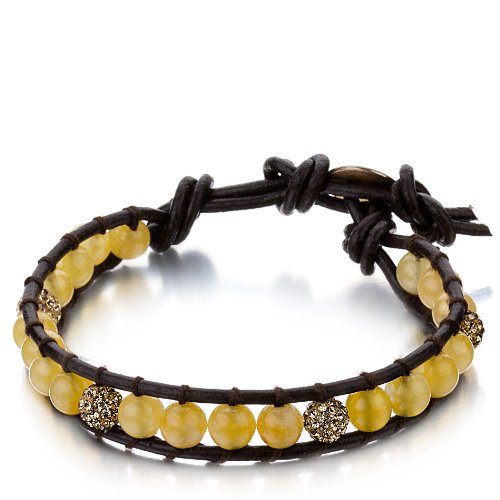 Best Seller! Shimla Brown Leather Bracelet with Yellow Jade Balls and Clear Czech Crystals Review