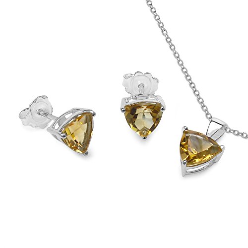 Best Seller! Silvancé - Women's 2pcs Jewellry Set - Pendant Necklace 18", Earrings - 925 Sterling Silver - Genuine Citrine - E1624-P2757C Review