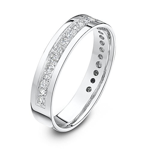 Best Seller! Theia 9 ct White Gold Heavy Weight, Flat Court Shape 4.5 mm Round 0.50 Carat Diamond Pave Set Eternity Ring - Size N Review